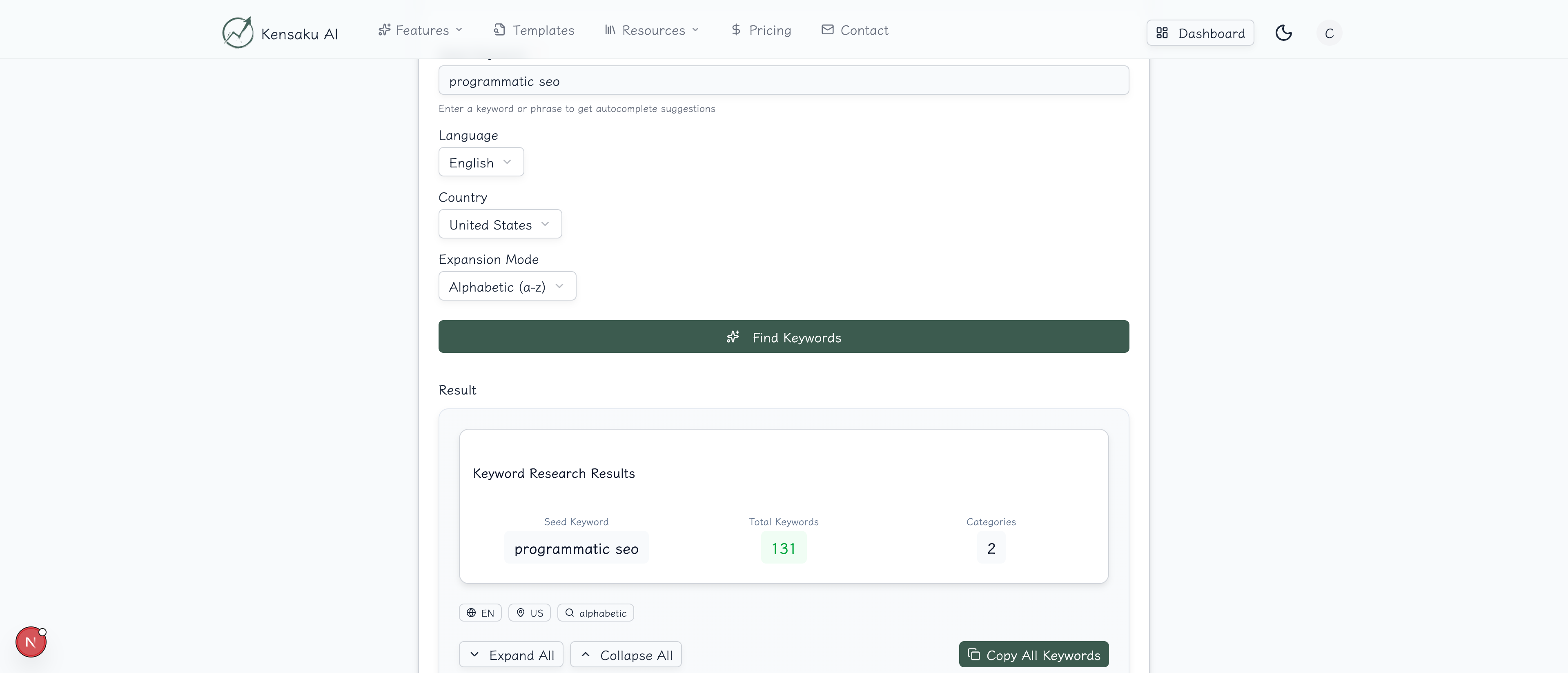Learn how to use Kensaku AI's free keyword research tool to discover hundreds of keyword ideas using Google Autocomplete data. Perfect for programmatic SEO campaigns.