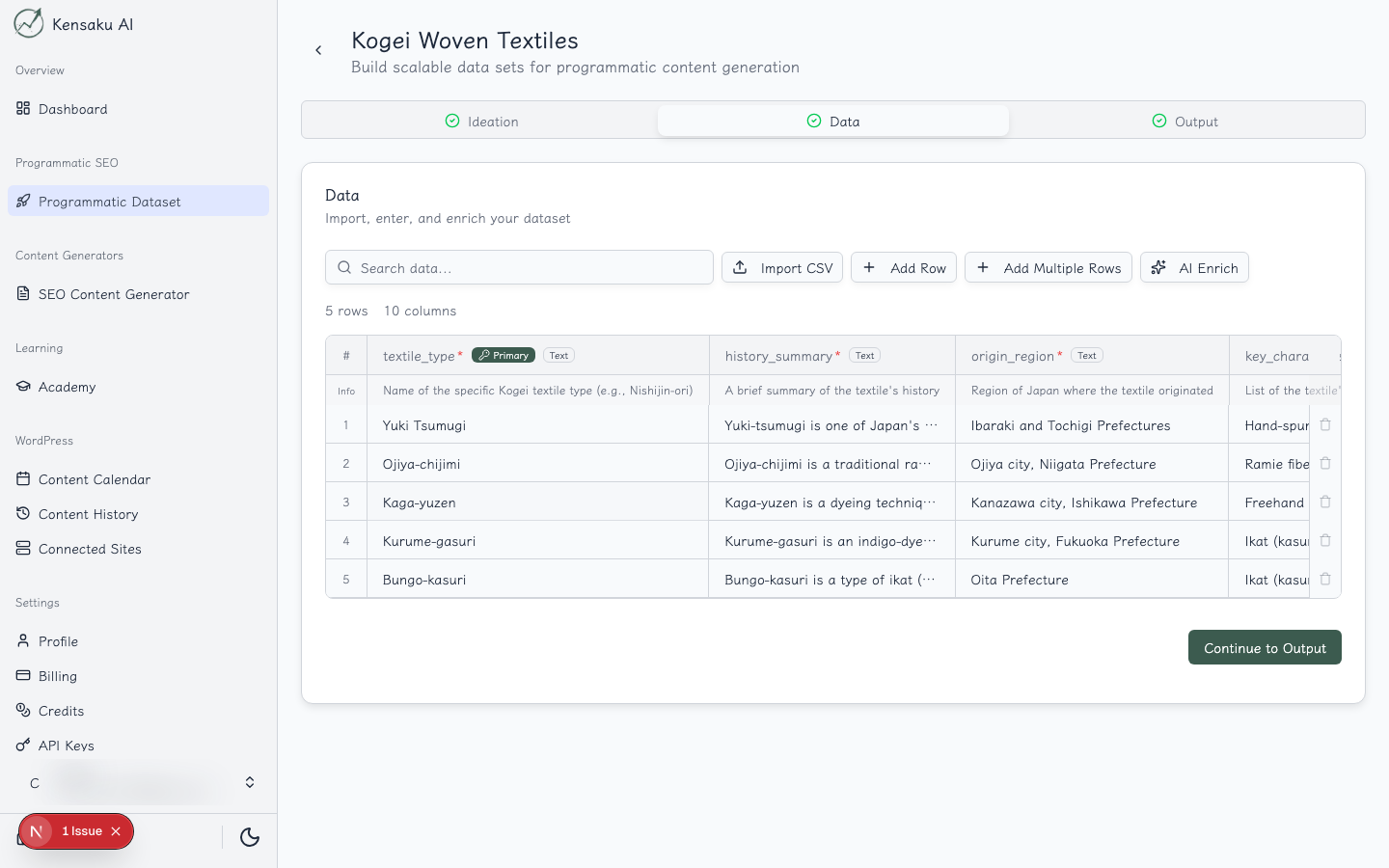 Learn how to create and manage programmatic SEO projects in Kensaku AI for scalable, data-driven content generation at scale.
